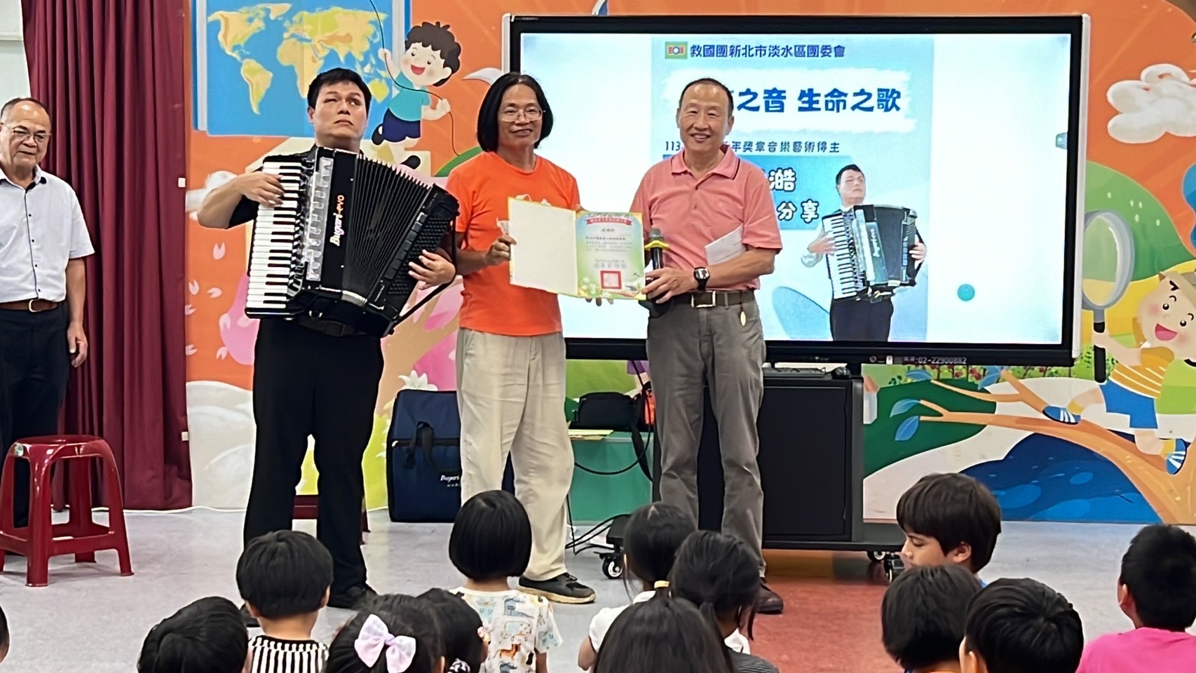 記者採訪 本會採訪報導 2024-05-31 音樂天使廖庭澔與112位師生共享生命之歌 一生福報/記者徐煒欽 徐璋穆新北報導 由救國團新北市淡水區團委會及新北市鶯歌愛心巡迴服務團共同辦理的「天使之音‧生命之歌」廖庭澔生命故事分享演出,於5月31日前往新北市淡水區忠山實驗國民小學進行表演,期盼透過音樂鼓勵孩童學習樂觀進取的精神、並學會用正確且正向的態度來面對生活中的逆境,認知每一個人都是有價值的,進而欣賞、接納他人,活動現場聚集112位師生共享音樂藝術之美。 廖庭澔先生出生時因早產,造成視網膜剝離雙眼全盲,成長過程則陸續發現精神、智能、語言障礙等,但他的父母不因庭澔的多重障礙而放棄希望,終於挖掘出庭澔對於鋼琴、音樂的天賦,更透過庭澔不斷的努力,突破自我限制,儘管在音樂道路上,走得比一般人更艱辛,他卻用音樂來豐富自己的生命,用他的音樂琴聲撫慰人心,如今,庭澔的情緒障礙逐漸改善,並能記憶千首以上的樂曲,他的夢想是到各處演奏,把音樂的美及生命的熱忱散播出去。 音樂會由廖庭澔先生帶來變化多端的手風琴獨奏-查爾達斯舞曲炒熱現場氣氛,隨後接著演奏耳熟能詳的童話、及自彈自唱小葳,讓現場師生大飽耳福掌聲不斷,為拉近與學生之間的距離,更演奏經典的櫻桃小丸子、哆啦A夢主題曲及小蘋果,孩子們紛紛跟著樂聲拍手、歌唱,歡樂的氣息散播其中,最後更以一首流浪到淡水邀請現場師生進行合唱,音樂會在歡愉的氣氛下完美落幕,會後,也邀請學生體驗重達20公斤的手風琴,透過音樂會讓每個孩子能以同理心認識差異,進而欣賞、接納他人。 新北市淡水區忠山實驗國民小學彭增龍校長表示,廖庭澔先生雖然患有多重的障礙,但他沒有自暴自棄,反而努力練習、用心聆聽,用音樂去探索世界,用音樂帶給人溫暖,鼓舞人心,與人共享音樂藝術之美,用殘而不廢的精神和毅力,啟發他人尊重生命並善用自身專長造福人群,傳遞善的力量。公益行善、造福人群報導 歡迎加入一生福報公益行善 https://lifebils.com/ 歡迎加入中華民國新聞記者協會 http://www.reporter.org.tw 返回