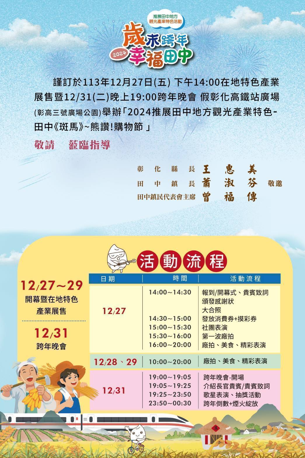 記者採訪 本會採訪報導 2024-12-27 「田中斑馬熊讚購物節」12/27起於彰化高鐵後站登場,連續三天熱鬧舉行 一生福報/記者徐煒竣 邱水文聯合報導 來田中斑馬熊讚購物節,黑白買YA!為推動彰化田中鎮觀光產業,田中鎮公所與田中工業區內61家廠商,共同合辦田中「斑馬」熊讚!購物節,廠商限時下殺優惠,吃的用的通通有。 田中鎮鎮長蕭淑芬,如數家珍地,沿著各個攤位介紹:田中鎮是「台灣米倉」,有高鐵、台鐵聯結交通便利,好山好水,是個宜居小鎮,歲末年終,特別與在地廠商,熱鬧舉辦購物節,一連三天,直到跨年夜。 不只可以黑白買,田中鎮公所配合地方輕旅行,特別規劃三種「一日遊」當地行程;跨年夜更會邀請多組知名樂團、歌手熱情開唱,跨年倒數更由歌王翁立友、歌后張秀卿一同陪伴,吃住玩,三種享受,來田中一次搞定。 彰化縣田中鎮是稻米的故鄉,是台灣三大米倉之一,也是五好宜居的經典小鎮 好山好水好米好空氣好長壽的地方,延續去年推展田中地方觀光產業特色活動,結合在地工業區內優質廠商的商品及在地農業的農特產品舉辦的展示展售會。 活動從12/27日~29日於田中高鐵後站廣場,三天百萬消費大放送,邀請全國各地好朋友們搭乘高鐵、台鐵及大衆交通運輸或憑住宿證明就可換消費券和摸彩券,好產品與全國好朋友分享,適合全家出遊選購,機不可失喔!歡迎大家一起來田中斑馬熊站購物節來黑白買,另外規劃三天三條路線在地輕旅行,讓大家進一步體驗、了解純樸經典小鎮田中之美~ 12/31日還有一場衆星雲集的跨年晚會,邀請大家一起來倒數跨年,迎接新的一年!公益行善、造福人群報導 歡迎加入一生福報公益行善 https://lifebils.com/ 歡迎加入中華民國新聞記者協會 http://www.reporter.org.tw 返回