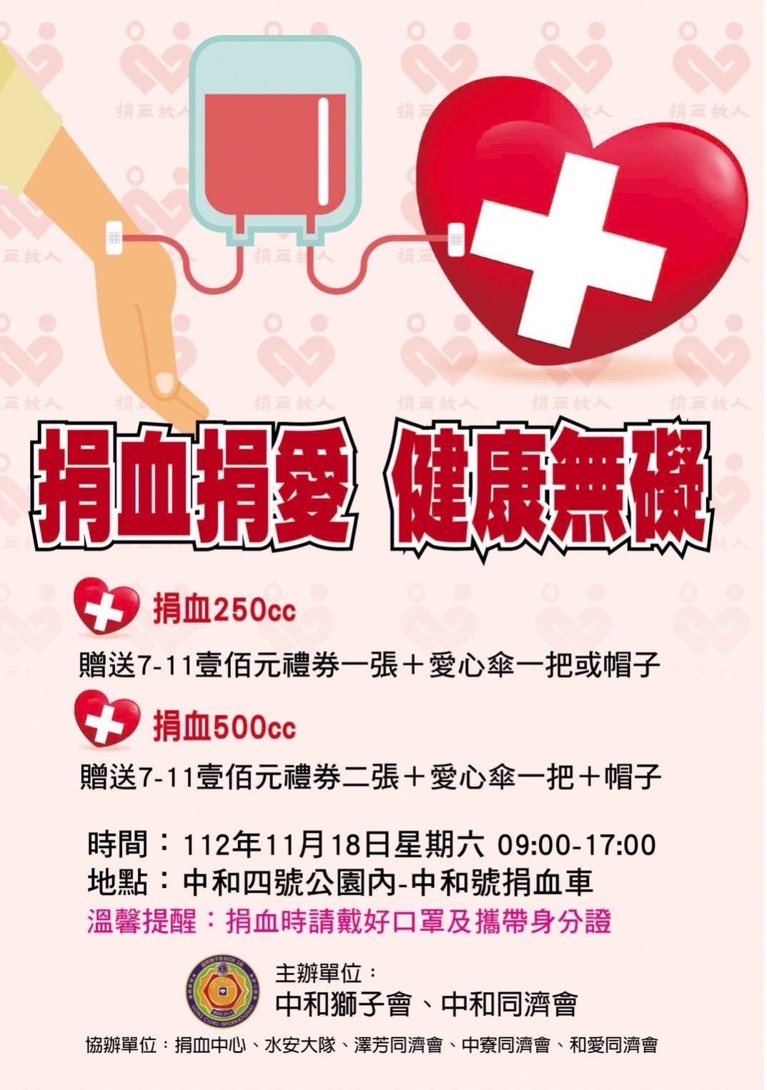 記者採訪 本會採訪報導 2023-11-18 中和同濟會攜手中和獅子會聯合友會團體舉行捐血、測血糖、AED急救教導.等公益活動~ 今天112年11月18日中和同際會和中和獅子會攜手眾友會,在中和四號公園主辦捐血一袋救人一命活動,吸引了眾多民眾的熱烈參與。 中和同濟會林演國會長受訪表示,同濟會與獅子會固定每隔三個月都會舉辦一次捐血公益活動,每次都能收集到250袋左右的有效血液,尤其在血荒期間幫助是非常大的。 今天與中和獅子會吳再發會長團隊,携手舉辦這場捐血活動,還得到了捐血中心、新北水上救護協會水安大隊、澤芳同濟會呂惠貞會長、南投中寮同濟會梁乃方會長、和愛同濟會孫芷葳會長..等單位率領熱心志工幹部前來鼎力協助。這彰顯了社會各界合作共識的重要,大家一起關懷社會並共同關心民眾健康,正是辦理捐血活動的宗旨。 今天活動地點設於中和四號公園,這是個方便大眾前來參與的場地,這個場地也為民眾提供了一個輕鬆愉快的環境,讓參與者能夠在愉悅的氛圍中參與今天的公益活動。 為了感謝捐血者的奉獻,活動提供了慷慨實用的贈品如下 捐血250cc的民眾將獲得便利商店禮券100元,並可選擇一把愛心傘或一頂帽子。若能捐獻500cc,更可獲得便利商店禮券200元,同時贈送一支愛心傘和一頂帽子。 現場也備有血糖檢測,民眾只要填寫資料並參加檢測,即可獲得印製榮華&富貴的精緻鑰匙圈,這些不僅是對捐血者參與血糖檢測者的感謝,也增添了整個活動的趣味性。 新北水上救護協會水安救護大隊,也在現場利用獅子會捐贈的add 儀器,在現場教導民眾急救技巧,以便民眾在遇到緊急狀況時能學以致用。 今天捐血活動的時間從上午九點至下午五點,維持一整天。這段時間充分考量了民眾的工作和生活節奏,以方便更多人來參與,大家可為社會公益事業出一份心力。 整個捐血活動的舉辦得到了附近與路過民眾的積極響應,不僅提高了對血液捐獻的意識,也促進了社會的凝聚力。相信這樣的公益活動將成為社會的優良傳統,繼續影響更多人來關注公益事業。公益行善、造福人群報導 歡迎加入一生福報公益行善 https://lifebils.com/ 歡迎加入中華民國新聞記者協會 http://www.reporter.org.tw 返回